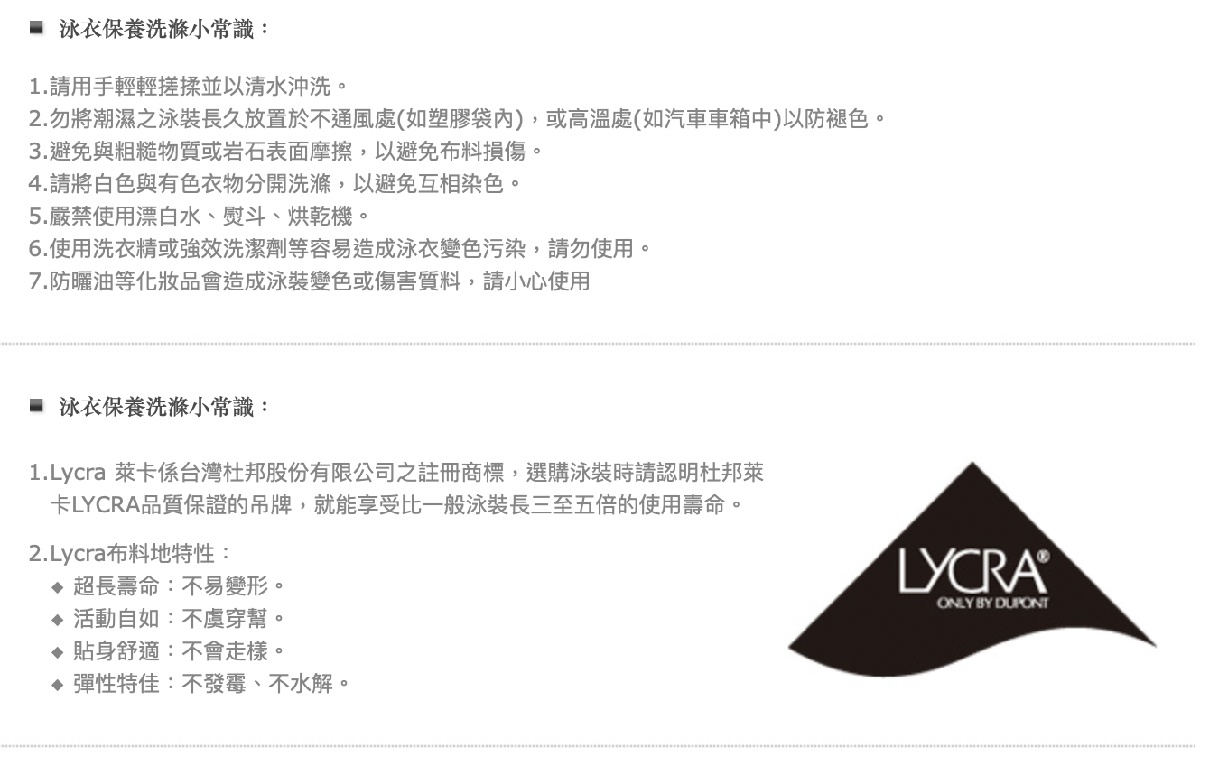 2.由於泳衣褲屬貼身衣物,吊牌拆掉或底褲貼紙一經拆封即無法退換貨。